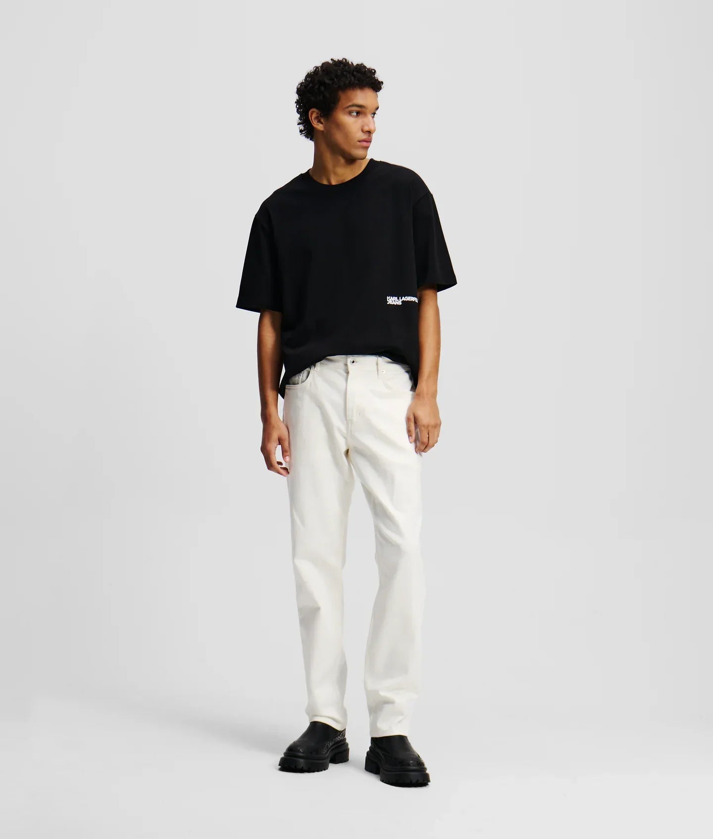 A versatile tapered silhouette defines these jeans, crafted with built-in comfort stretch for easy movement. A branded shank button, K-initial embroidery and signature KARL LAGERFELD JEANS leather patch add statement flair, making these a wardrobe must-have.