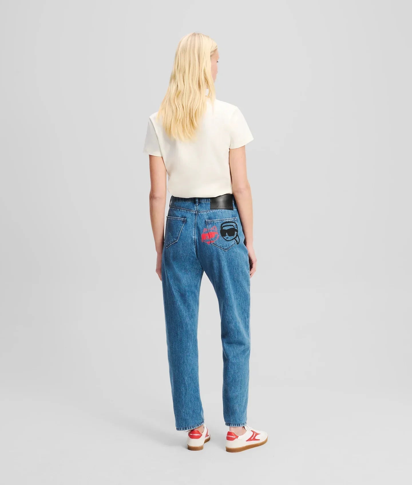 These classic straight-fit jeans offer versatile styling for any occasion. Featuring unique IKON Karl and Choupette artwork at the back pocket, these jeans showcase a branded button and leather logo patch.